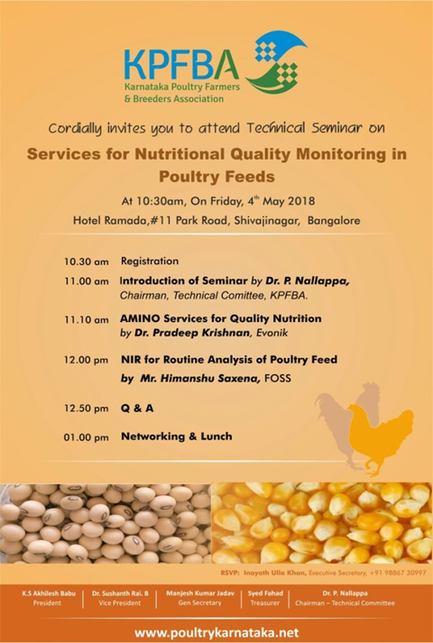 Technical Seminar on Services for Nutritional Quality Monitoring in Poultry Feed held on 04th May 2018 at Hotel Ramada, Bangalore
